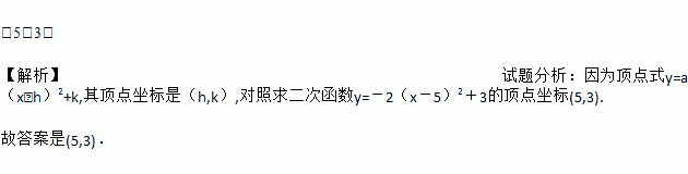 二次函数y=﹣2(x﹣5)2+3的顶点坐标是 。