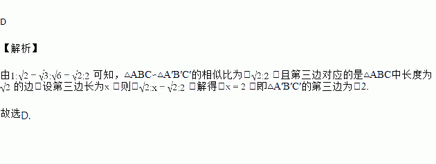已知△ABC的三边长分别为1、 、 ,△A′B′C′的两边长分别为和 .如果△ABC∽△A′B′C′,那么△A′B′C′的第三边为( )