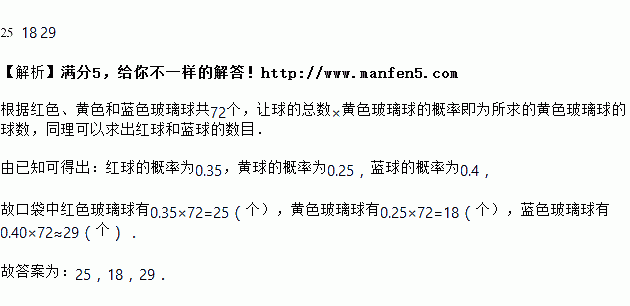 ,则口袋中有红球、黄球和蓝球的数目很可能是________个、________个和________个.![]()