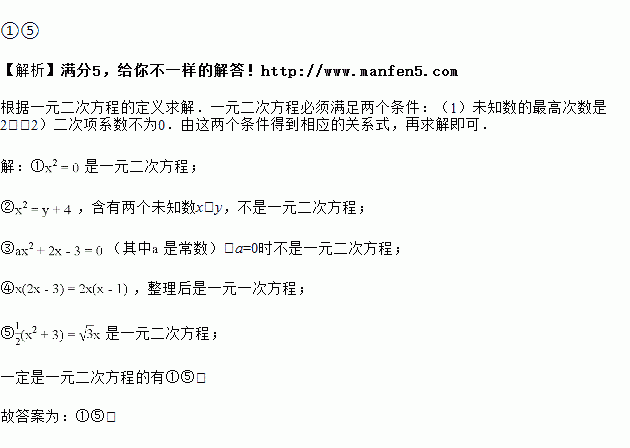 ④; ⑤,一定是一元二次方程的有__________(填编号)