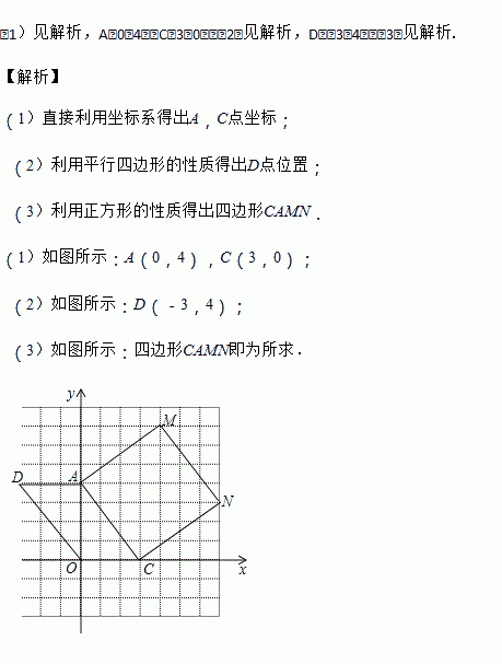 (3)以AC为边,在第一象限作一个四边形CAMN,使它的面积为OA2+OC2 .