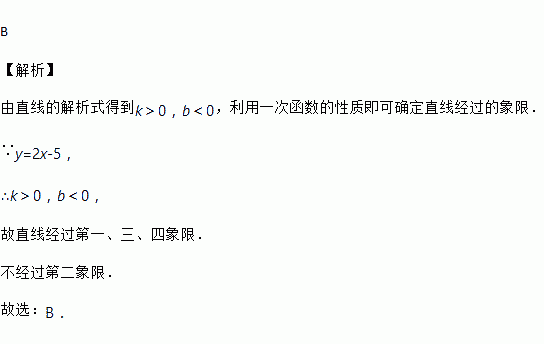 一次函数y=2x-5的图象不经过的象限是( )