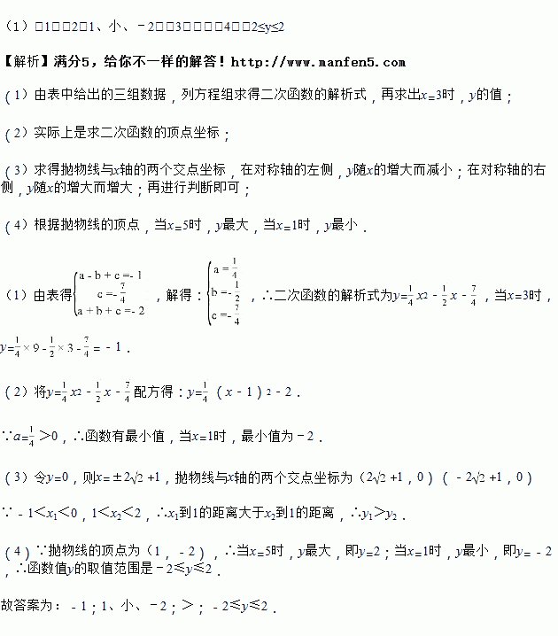 (2)当x=_____时,y有最________ 值为________;
