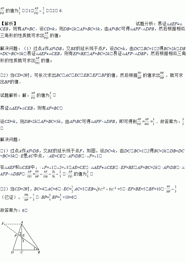 Èçͼ 3£¬ÔÚ¡÷ABCÖУ¬¡ÏACB=90¡ã£¬µãDÔÚBCµÄÑÓ³¤ÏßÉÏ£¬ADÓëAC±ßÉϵÄÖÐÏßBEµÄÑÓ³¤Ïß½»ÓÚµãP£¬DC£ºBC£ºAC=1£º2£º3 £®