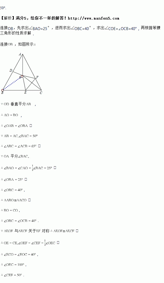 已知等腰三角形一腰上的高线与另一腰的夹角为50°,那么这个等腰三角形的顶角等于( )