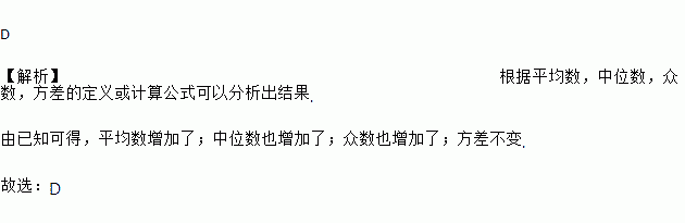 A. 平均数 B. 中位数 C. 众数 D. 方差