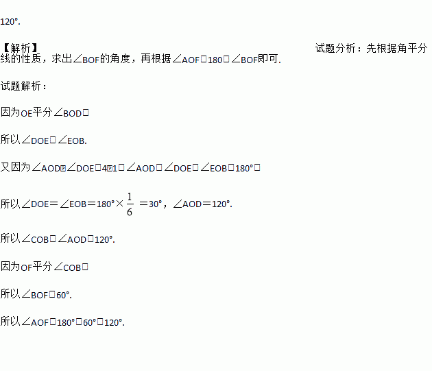 如图,直线AB,CD相交于点O,OE平分∠BOD,OF平分∠COB,∠AOD:∠DOE=4:1.求∠AOF的度数.