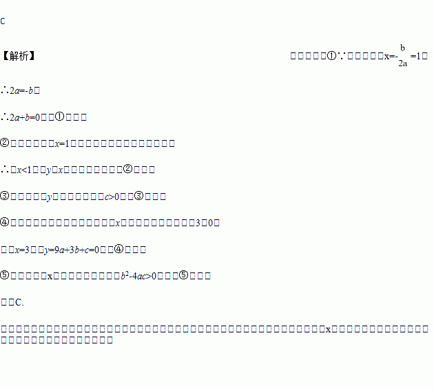 ① 2a+b=0 ② 当x<1时,y随x的增大而增大