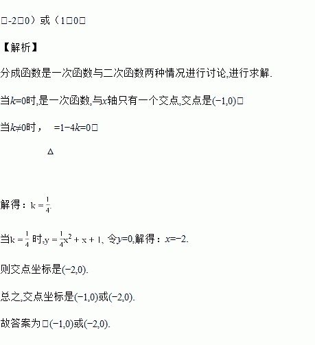 的图象与轴只有一个交点,则交点坐标为_______________。![]()