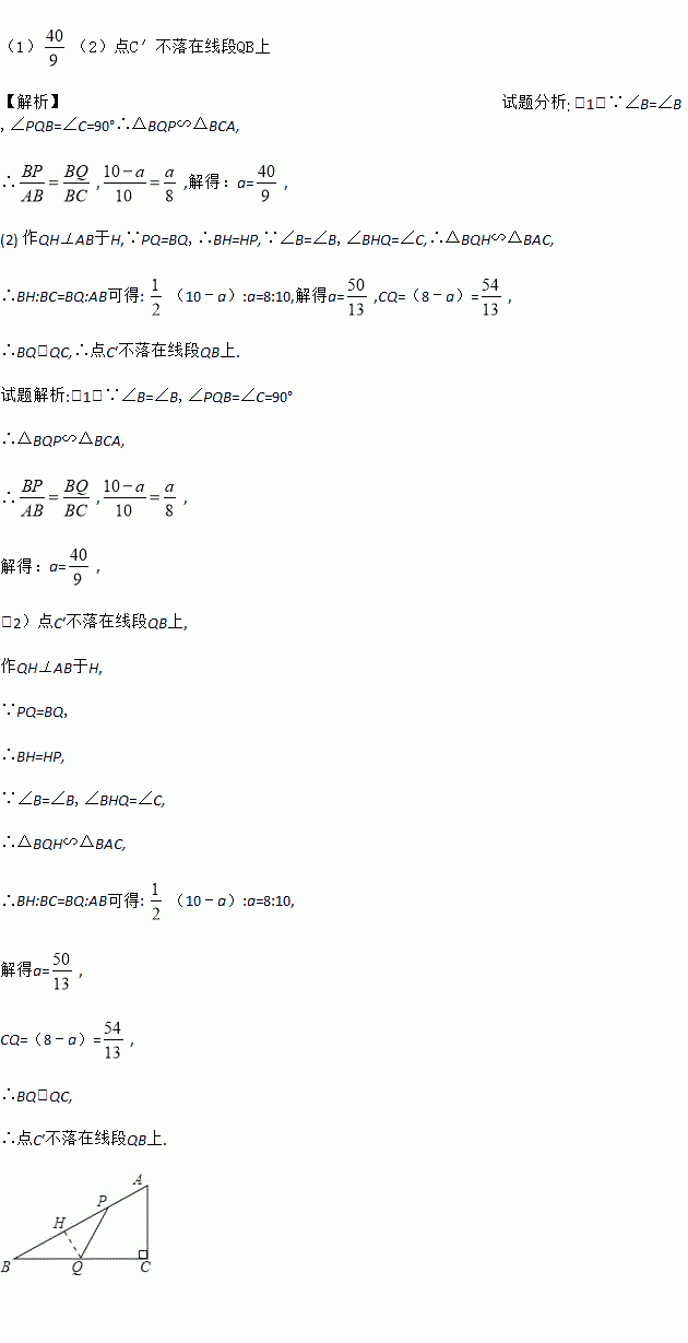 如图,在△ABC中,∠C=90°,AB=10,BC=8,P、Q分别是AB、BC边上的点,且AP=BQ=a (其中0<a<8).