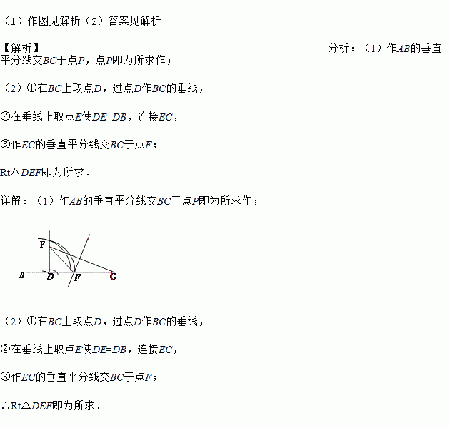 (2)作出一个△DEF,使得:①△DEF是直角三角形;②△DEF的周长等于边BC的长。