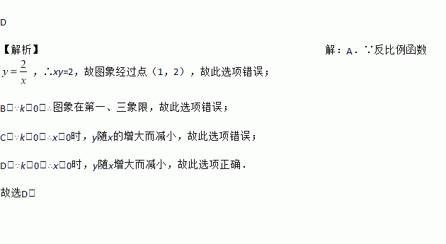 对于反比例函数,下列说法正确的是