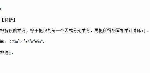 C 【解析】 根据积的乘方,等于把积的每一个因式分别乘方,再把所得的幂相乘计算即可. 【解析】 (﹣3a2)2=32a4=9a4. 故选C.