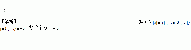 已知|x|=|y|,x=-3,则y=_______.