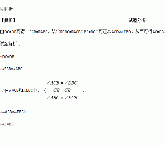 如图,在△ABC中,D是AB边上一点,且DC=DB.点E在CD的延长线上,且∠EBC=∠ACB.求证:AC=EB.