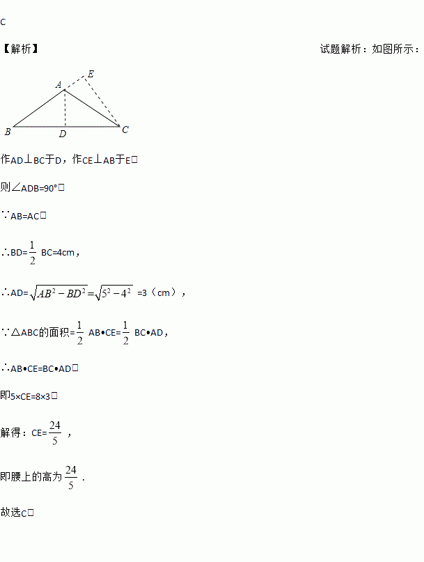 一等腰三角形底边长为8 cm,腰长为5 cm,则腰上的高为( )
