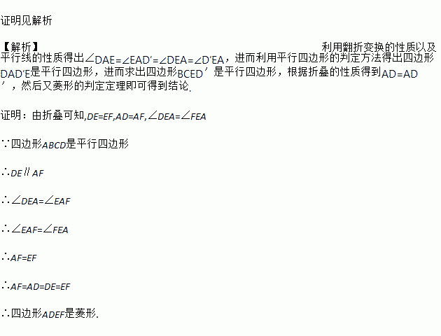 如图,将平行四边形ABCD沿过点A的直线l折叠,使点D落到AB边上的点F处,折痕交CD边于点E.