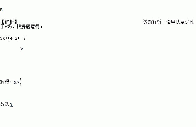 某足协举办了一次足球比赛,积分规则是:胜一场积3分,平一场积1分,负1场积0分.若甲队比赛了5场,其中负1场,积分超过7分,则甲队至少胜了( )