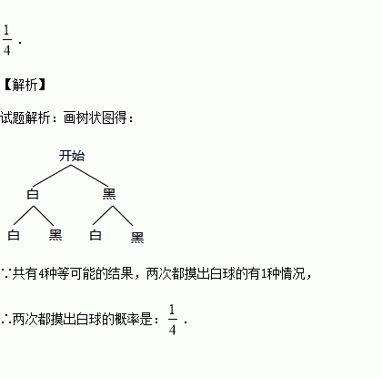 布袋中有1个黑球和1个白球,这两个球除颜色外其他都相同,如果从布袋中先摸出一个球,放回摇匀后,再摸出一个球,那么两次都摸到白球的概率是 .
