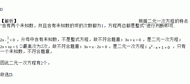 方程,,,,中,二元一次方程的个数是( )