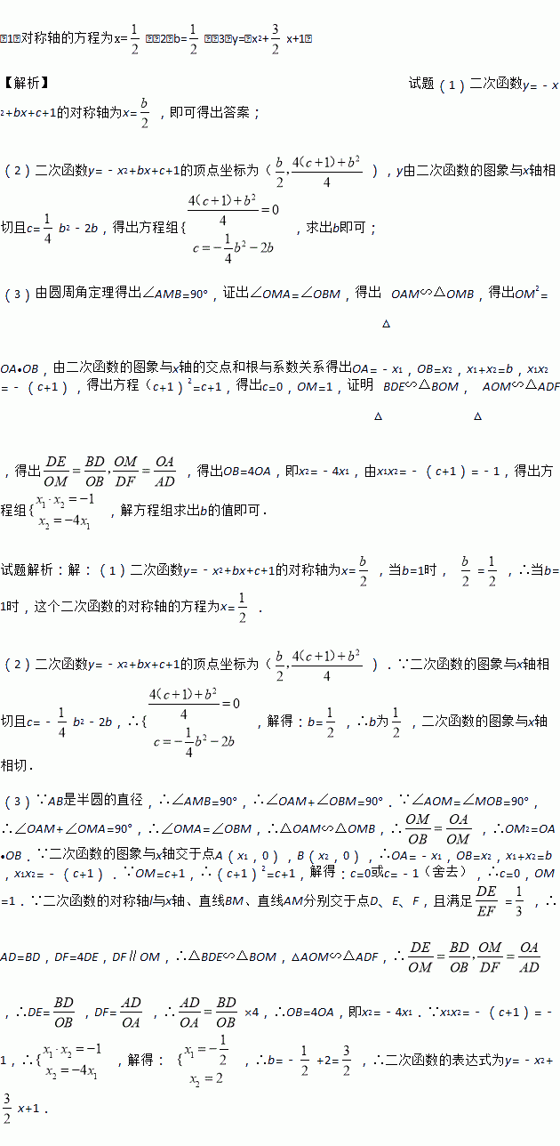 (1)当b=1时,求这个二次函数的对称轴的方程;