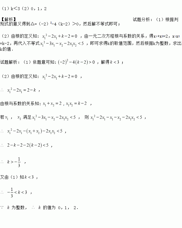 关于的方程有两个不相等的实数根,则整数的最大值是( )