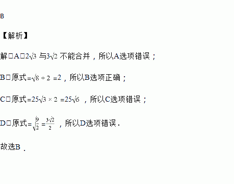 A. 2+3=5 B. ÷=2