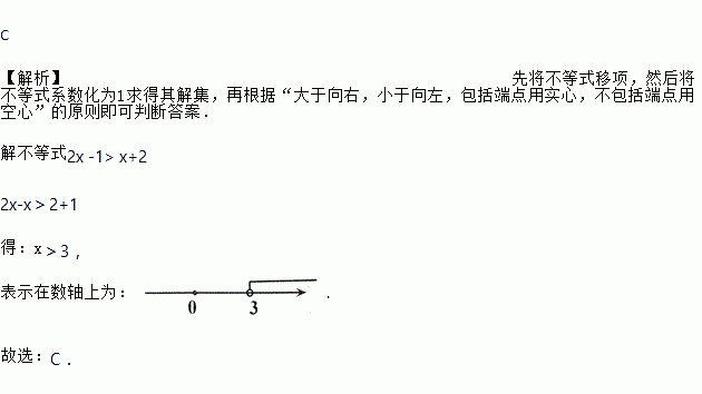 把不等式2x -1> x+2的解集在数轴上表示正确的是( )