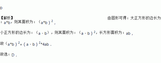 C. a2﹣b2=(a+b)(a﹣b) D. (a+b)2=(a﹣b)2+4ab