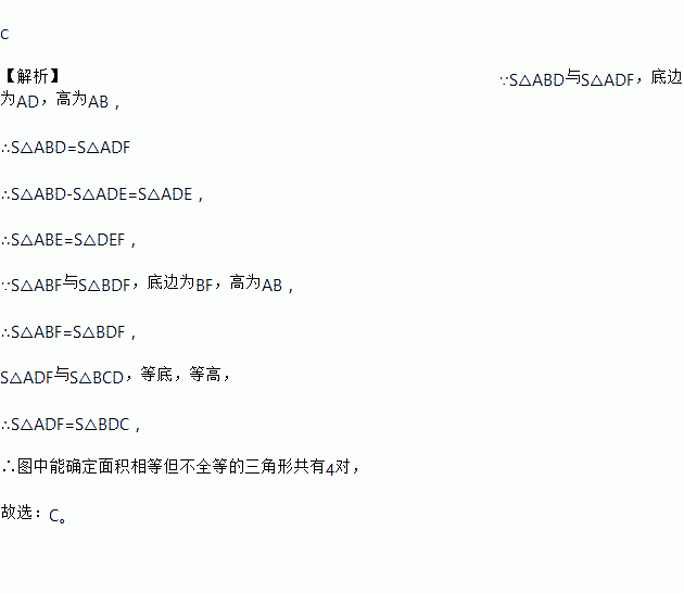 如图,在矩形ABCD中,AF⊥BD于E,AF交BC于点F,连接DF,则图中面积相等但不全等的三角形共有( )