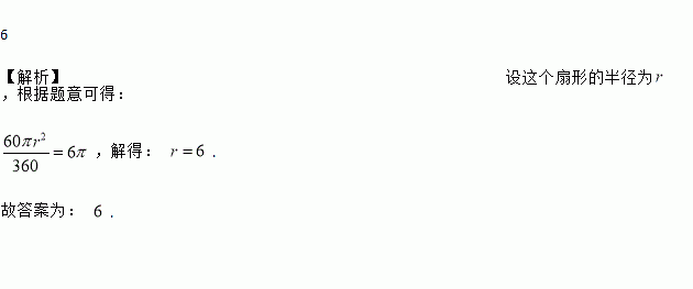 若一个扇形的圆心角为60°,面积为6π,则这个扇形的半径为__________.