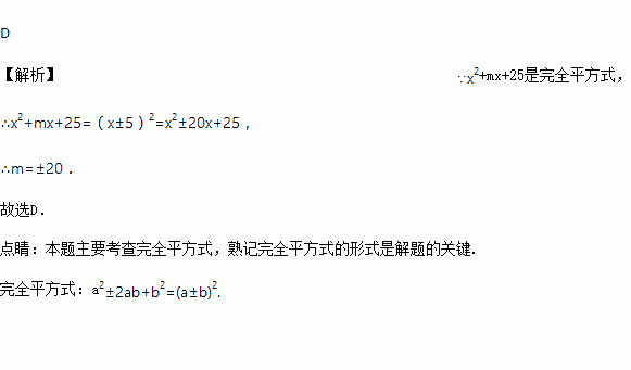 多项式是完全平方式,那么m的值是( )