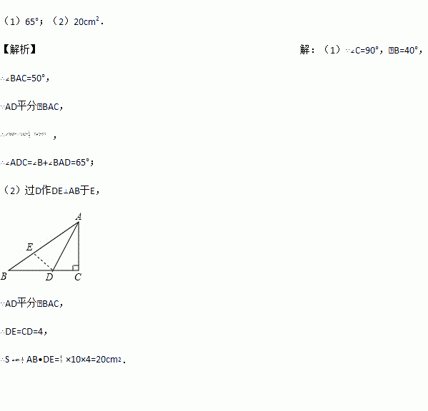 (2)若AB=10cm,CD=4cm,求△ABD的面积.