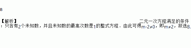 若方程mx-3y=2x-4是关于x,y的二元一次方程,则m满足( )