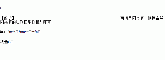 A. ﹣1 B. ﹣5m2n C. ﹣m2n D. 不能合并