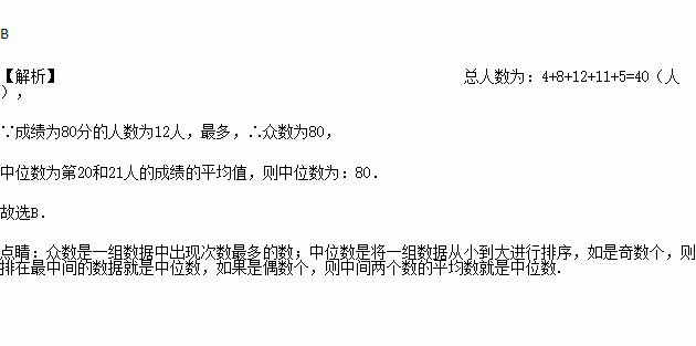 则该班学生成绩的众数和中位数分别是( )