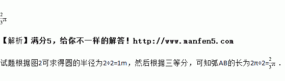 图1中的三翼式旋转门在圆形的空间内旋转,旋转门的三片旋转翼把空间等分成三个部分,图2是旋转门的俯视图,显示了某一时刻旋转翼的位置,根据图2中的数据,可知的长是_________m.