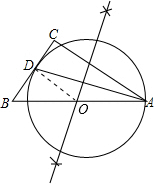 分析:(1)作AD的垂直平分线交AB于点O,O为圆心,OA为半径作圆;