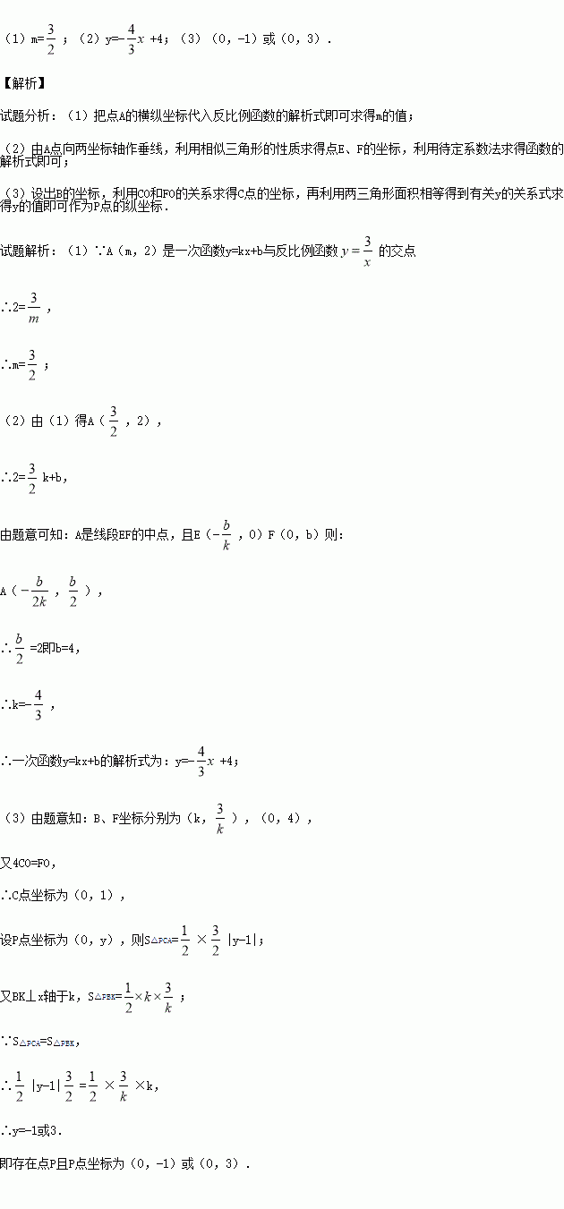 已知:A(m,2)是一次函数y=kx+b与反比例函数