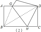 (2)根据折叠的性质可得DH=BH,设BH=DH=x,表示出CH,然后在Rt△CDH中,利用勾股定理列出方程求出x,再连接BD、BG,根据翻折的性质可得BG=DG,∠BHG=∠DHG,根据两直线平行,内错角相等求出∠BHG=∠DGH,然后求出∠DHG=∠DGH,根据等角对等边可得DH=DG,从而求出四边形BHDG是菱形,再利用勾股定理列式求出BD,然后根据菱形的面积列出方程求解即可.