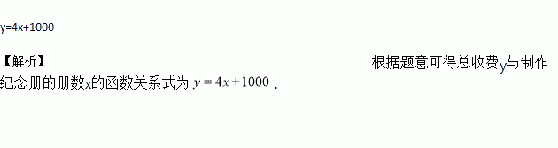 某公司制作毕业纪念册的收费如下:设计费与加工费共1000元,另外每册收取材料费4元,则总收费y与制作纪念册的册数x的函数关系式为__.