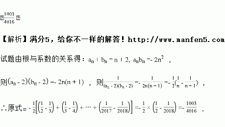 对于一切不小于2的自然数n,关于x的一元二次方程x2﹣(n+2)x﹣2n2=0的两个根记作an,bn(n≥2),则______