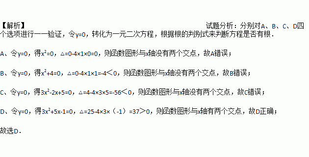 下列二次函数中有一个函数的图像与x轴有两个不同的交点,这个函数是( )