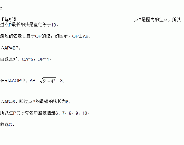 已知点P是半径为5的⊙O内一定点,且OP=4,则过点P的所有弦中,弦长可能取到的整数值为( )