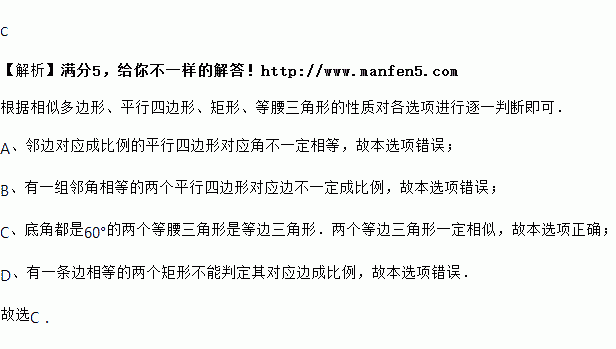 A. 邻边对应成比例的两个平行四边形 B. 有一个内角相等的两个平行四边形