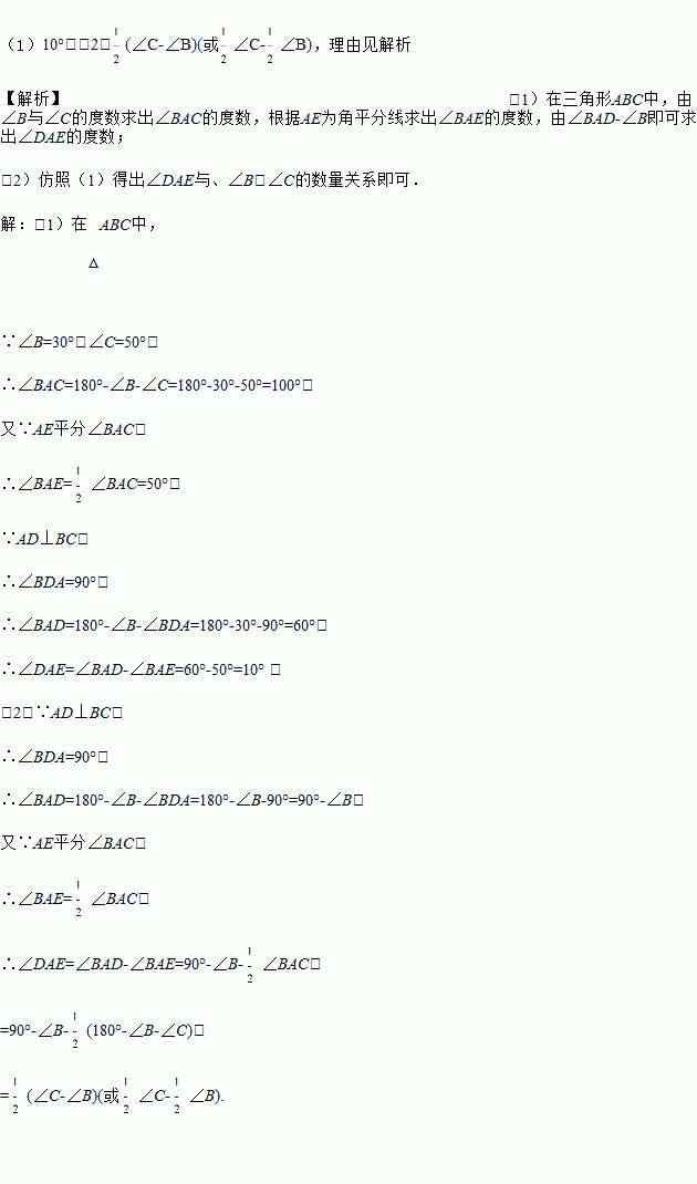 (1)若∠B=30°,∠C=50°,试确定∠DAE的度数;