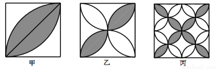③ 丙地砖以正方形边长的一半为直径作弧得到丙图所示的阴影部分;