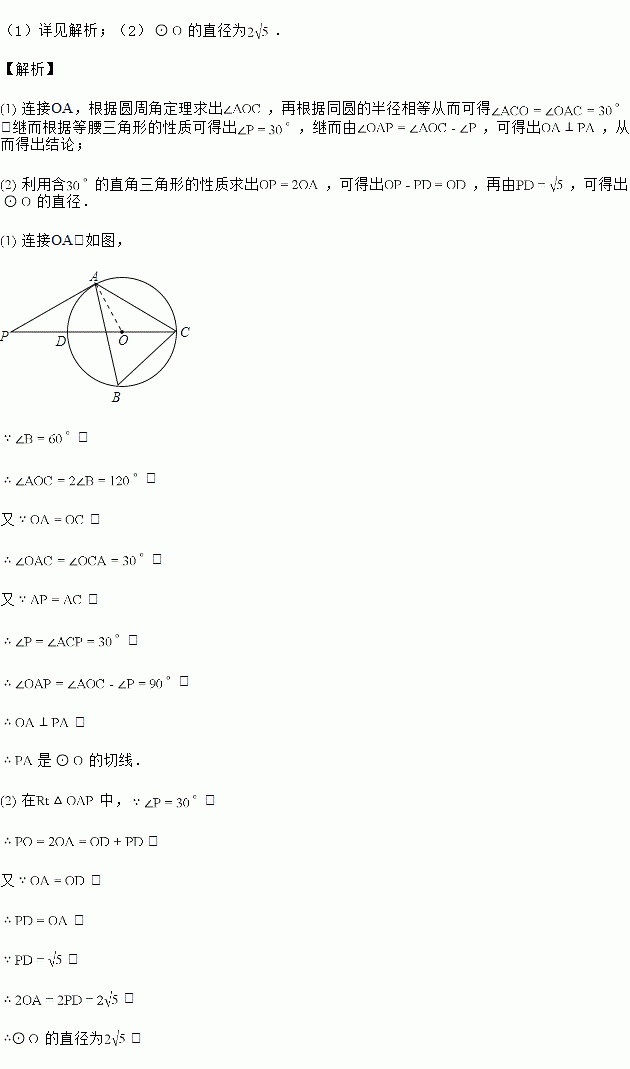 如图内接于,,CD是的直径,点P是CD延长线上一点,且.