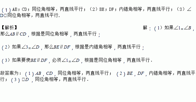 (3)如果要使BE∥DF,必须∠1=∠_______,根据是_________________________.