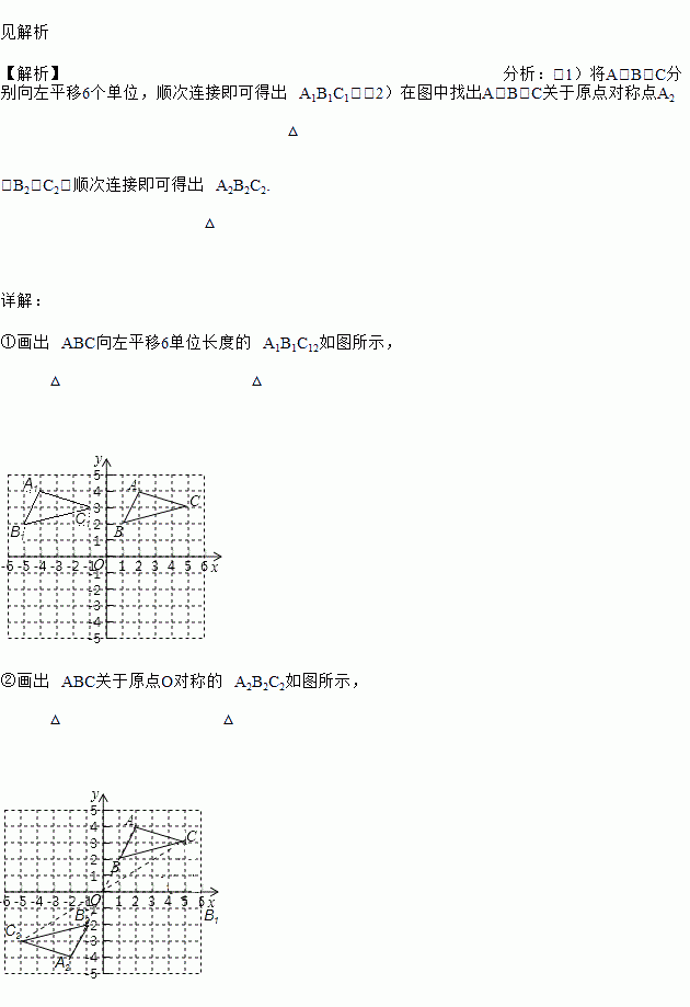 ①画出△ABC向左平移6单位长度的△A1B1C1